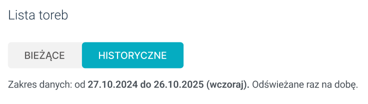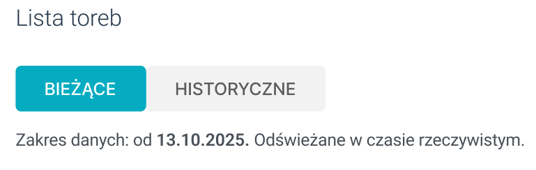 Widok jest zoptymalizowany pod kątem wydajności i wygody pracy, oferując dwa tryby wyświetlania danych: "Bieżące" i "Historyczne"