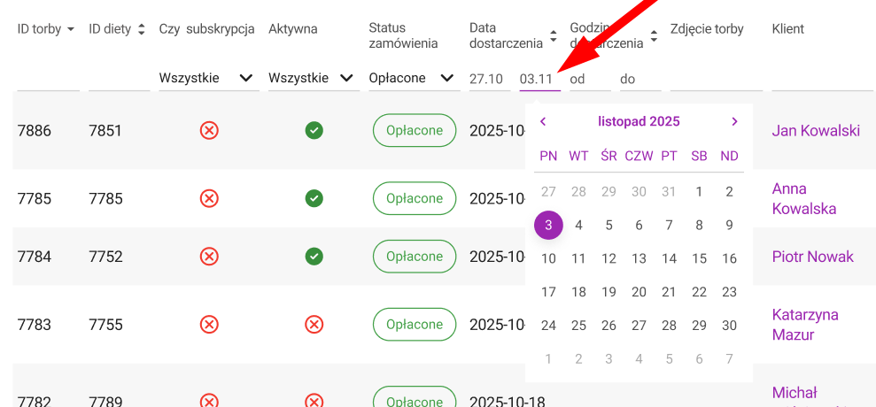 - Wszystkich zaplanowanych toreb do dostarczenia w przyszłości