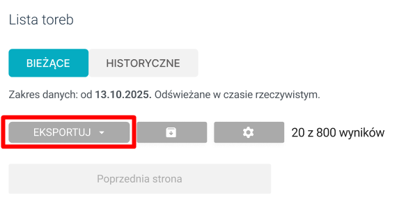 💡Pamiętaj: Po zastosowaniu opisanych w paragrafie wyżej filtrów danych, dane eksportowane w pliku będą odzwierciedlały zawężone przez Ciebie wyniki.
