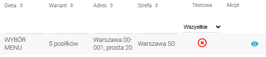 Na liście diet wyszukujemy daną dietę (po np. mailu klienta), przewijamy kolumny w prawo i klikamy w podgląd diety (niebieska ikona oka).