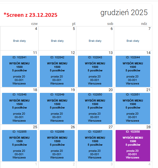 Na podglądzie diety wybieramy dzień, który jeszcze się nie odbył.