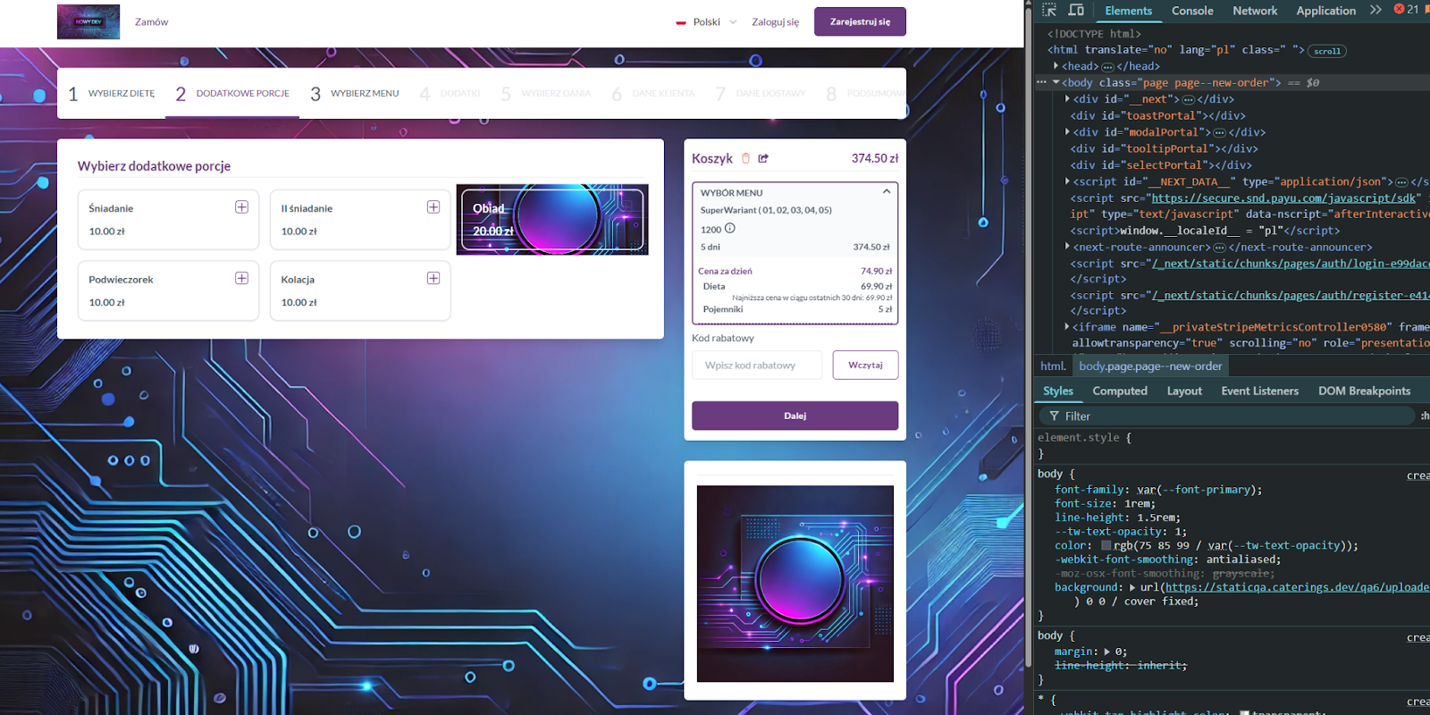 Artykuł opisuje jak krok po kroku wykorzystać atrybut data-mealtype-id na dodatkowych porcjach, aby nadać spersonalizowany wygląd kafelkom dodatkowych porcji.