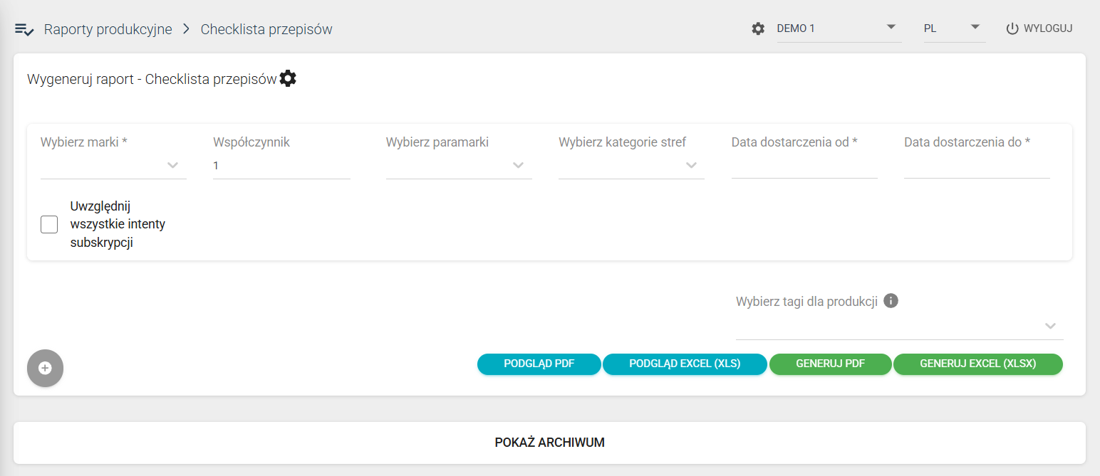 Raport ten znajdziesz w sekcji "Raporty produkcyjne >> Checklista przepisów"